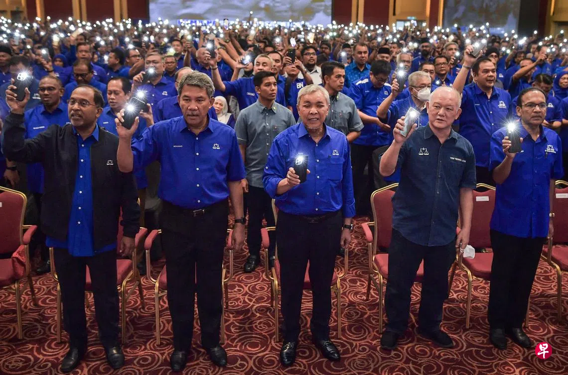 国阵星期五(7月21日)晚在吉隆坡世界贸易中心公布六州选举候选人名单,上千名国阵成员党的党员到场支持。虽然马华和印度国大党已宣布不参加州选举,但仍派出代表与会,展现国阵的团结。
