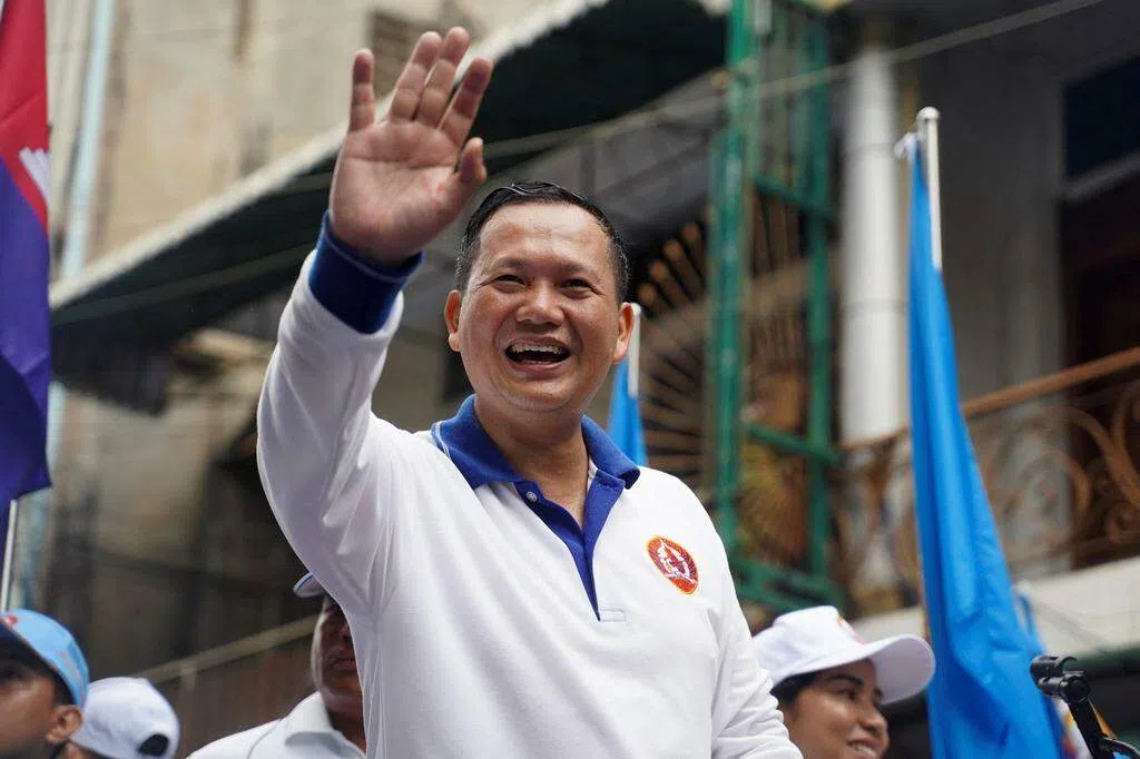 (金边综合电)在柬埔寨长期执政的人民党宣布,在星期天的大选赢得压倒性胜利。人民党的政治主导地位因此延长,首相洪森交棒予儿子洪马内的障碍也扫清。