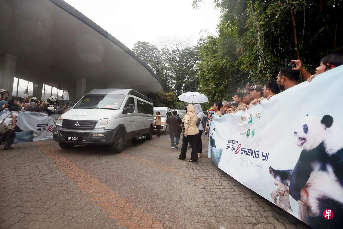 (吉隆坡综合讯)在马来西亚出生的大熊猫“谊谊”和“升谊”星期二(8月29日)返回中国。马国国家动物园特别为它们举行欢送会。不过,“谊谊”和“升谊”回返中国前必须检疫隔离,因此没有在欢送会上“亮相”。