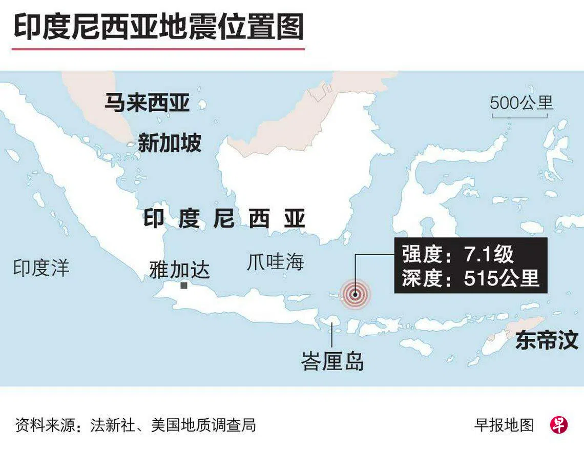 根据美国地质调查局的数据,地震发生在当地时间凌晨3时55分(新加坡时间凌晨3时55分),震中位于峇厘岛附近的吉利群岛东北181公里处,震源深度约515公里。整个峇厘岛以及附近的龙目岛和松巴哇岛都有震感。