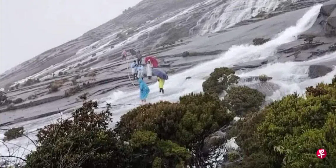 (亚庇综合讯)星期二(9月12日)上午的一场大雨,造成马来西亚沙巴州著名旅游景点神山(又称京那峇鲁山)山顶出现湍急水流并冲泻而下。当时登山者和向导紧紧抓住绳索,顶着汹涌的水流下山,幸未造成人员伤亡。
