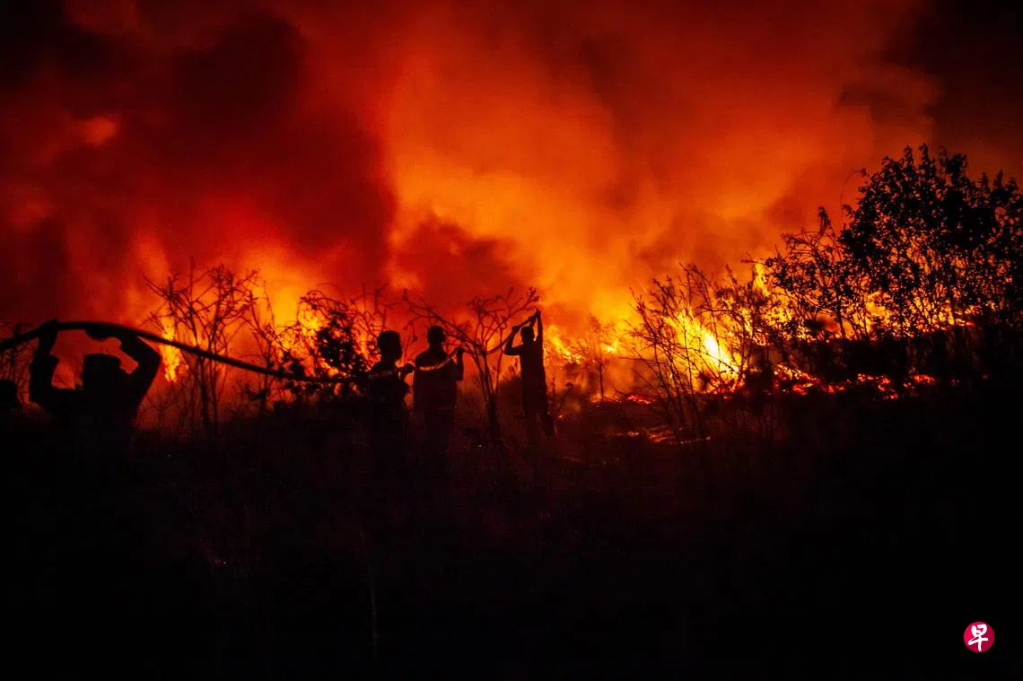 印尼林火问题上个月变得更为严重,国家减灾署发言人阿卜杜勒对《海峡时报》说,当局出动巡逻队到泥炭地面积广的丛林,也采用空投水弹和播云造雨的方式,尝试扑灭林火。
