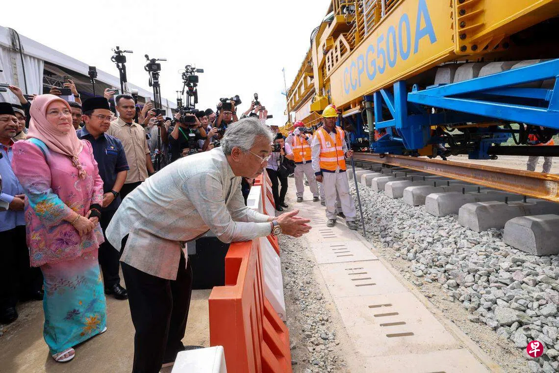 (关丹综合讯)中国在马来西亚的“一带一路”重点项目东海岸铁路项目,星期一举行首段轨道铺设动工仪式。