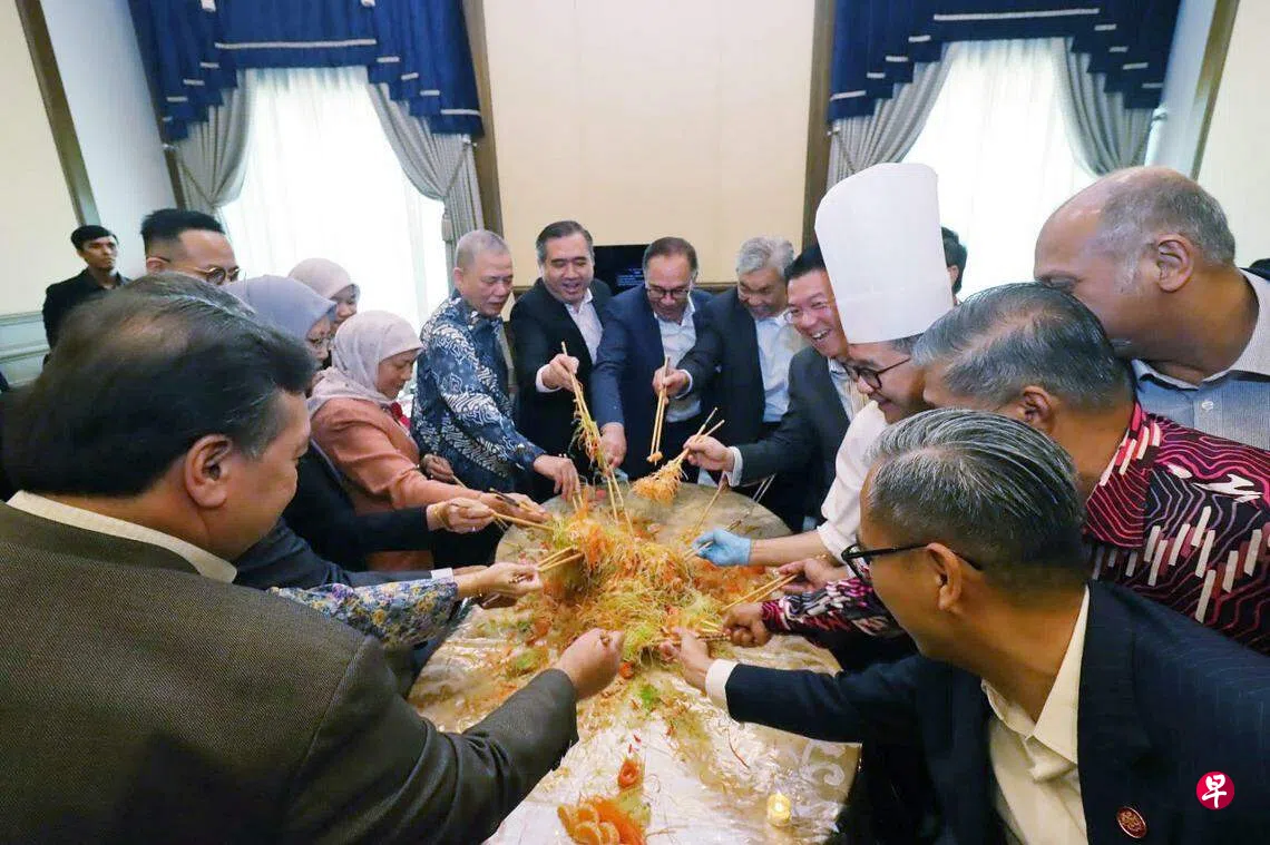 (布城综合讯)配合华人农历新年的到来,马来西亚交通部长陆兆福主办内阁捞鱼生活动。首相兼财政部长安华主持内阁会议后,率领全体内阁部长一同捞鱼生,象征团结政府不分种族,和谐共处。