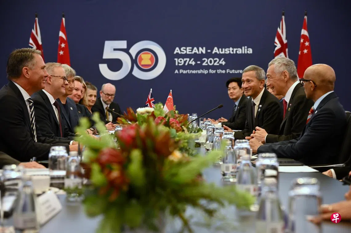 李显龙总理星期二(3月5日)在与澳洲总理阿尔巴尼斯一同召开的联席记者会上,谈到澳洲在区域安全框架中的角色时说,澳洲发挥非常重要的作用。他对阿尔巴尼斯政府通过去年9月发布的《至2040年的澳洲东南亚经济战略》等措施加深与东南亚国家的联系表示欢迎。