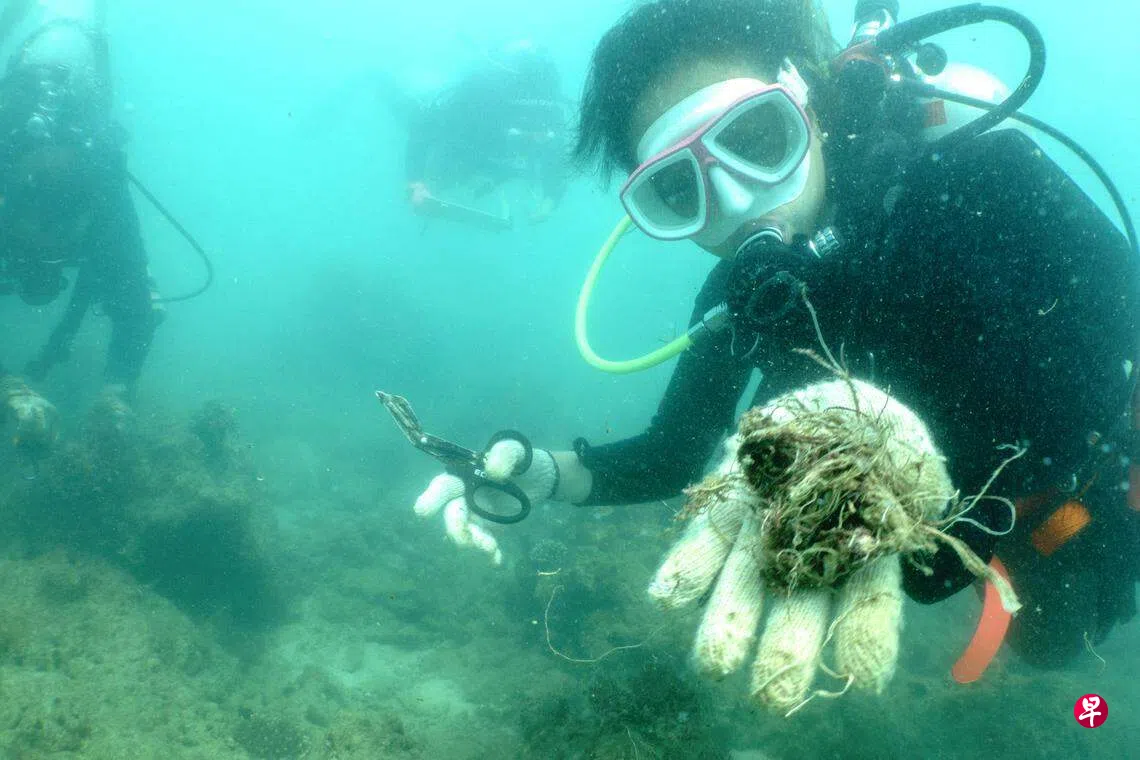 展开海洋清理工作的环境正义基金会东南亚塑料管理人沙丽沙说:“我们不断清理被丢弃的渔具。我们有一个强大的潜水员团队,也有很多政府部门参与这个清理工作。”