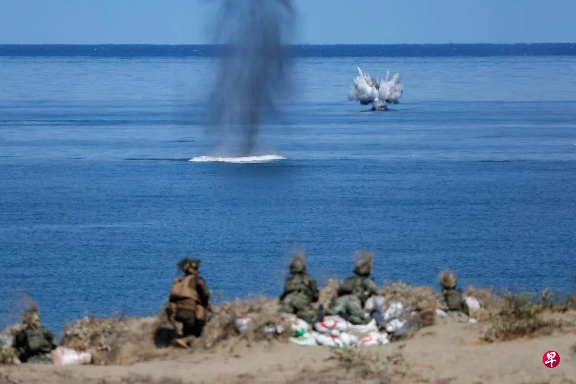 美菲正在进行“肩并肩”(Balikatan)年度联合军演,两军部队星期一向吕宋岛西北部面向台湾的海上“假想敌”发射导弹和炮弹。200名军人轮番守卫伊罗戈斯省沿海市镇拉瓦格(Laoag)的海岸线,用标枪反坦克导弹、榴弹炮和机枪击退试图冲击海滩的不明敌军。