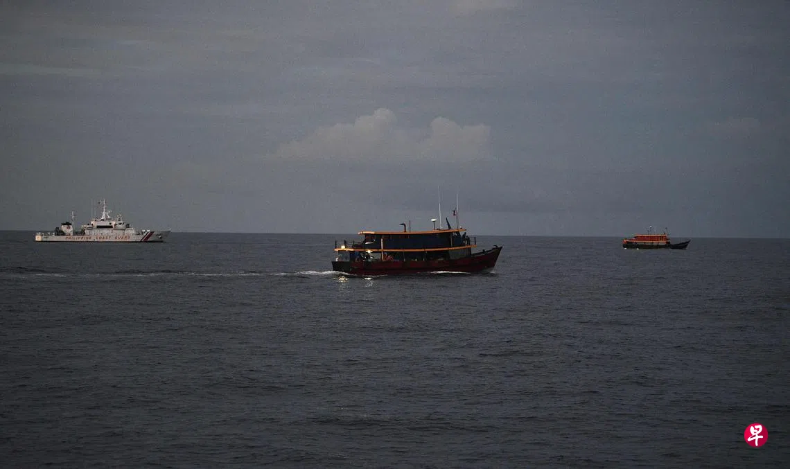 据报道,多艘中国渔船在黄岩岛海域作业,中国海警定期进行海上救生训练,保障来往船只人员安全。