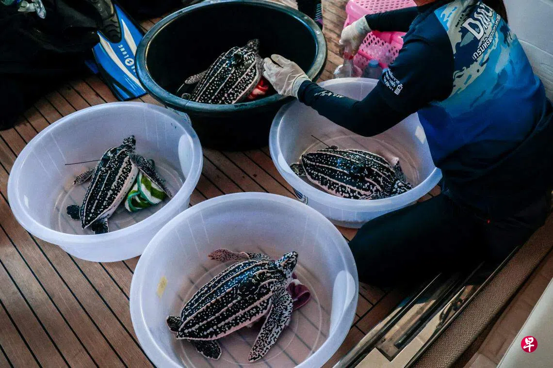 泰国海洋及海岸资源局负责人宾沙指出,较强壮的棱皮龟一般在约一岁时会被放回大海,但也有不少在孵化后就死亡,因此保育人士启动了一项哺育计划,专门照顾这些弱小的棱皮龟宝宝。