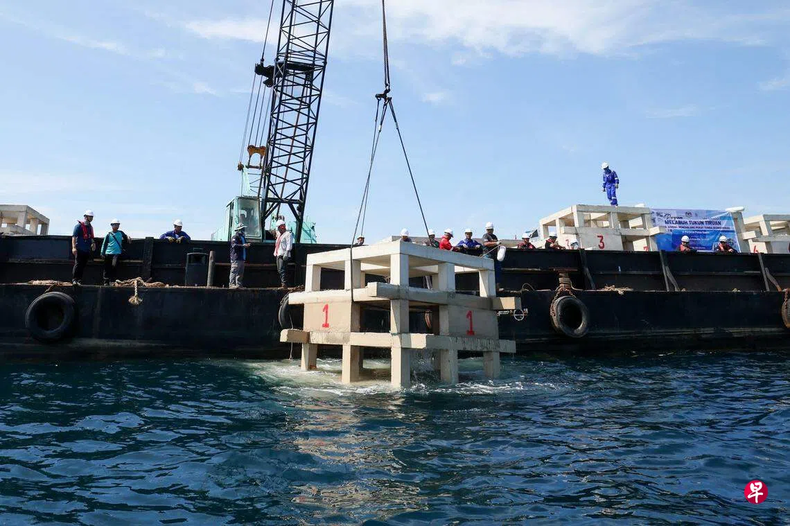 马来西亚渔业局为保护半岛东海岸的鱼类等各种海洋生物,耗资40万令吉(约11万5000新元)在登嘉楼州的棉花岛和热浪岛水域投放13个人造礁,防止拖网渔船在这些海域捞捕。