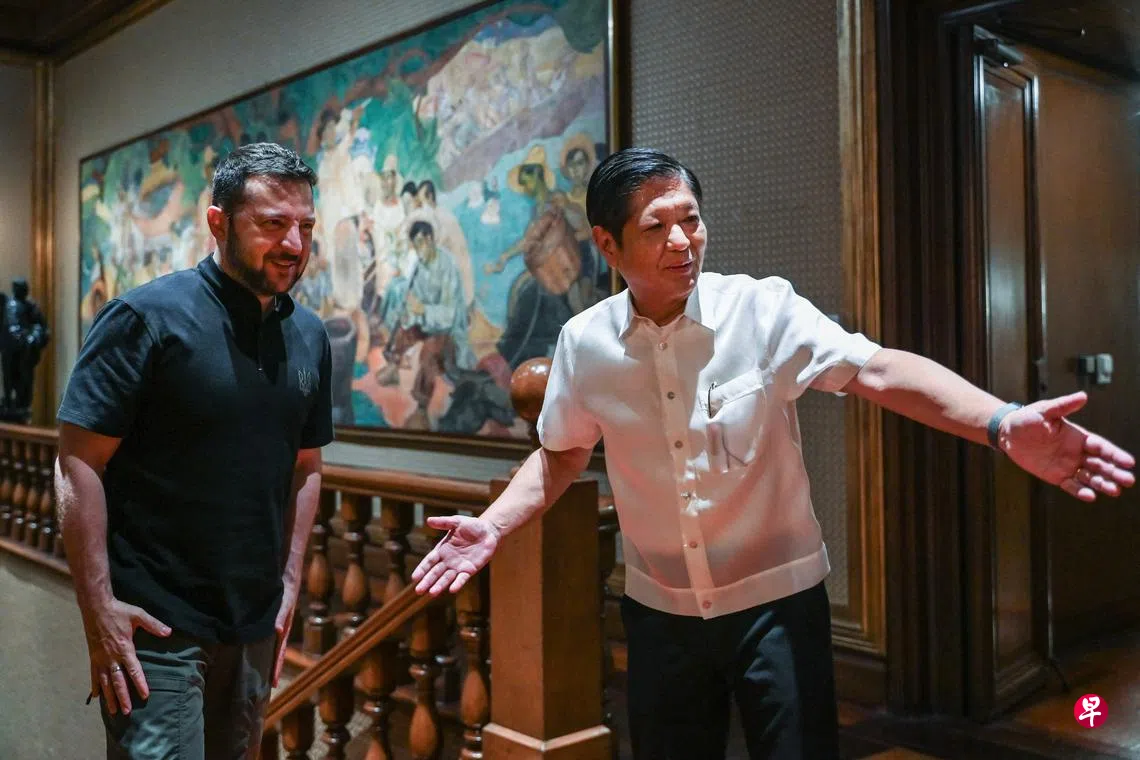 (马尼拉综合电)乌克兰总统泽连斯基星期一(6月3日)访问菲律宾,与菲总统小马可斯会面。泽连斯基感谢小马可斯对俄罗斯入侵乌克兰表达“明确立场”,以及给予乌克兰的支持。