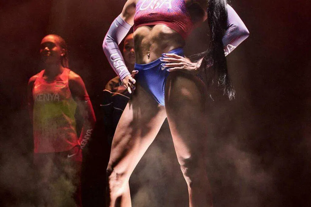 奥理会这次也让运动员穿上队服向记者展示。奥理会上周公布队服时,将队服套在人体模型上展示,引起服装设计师等专业人士批评。