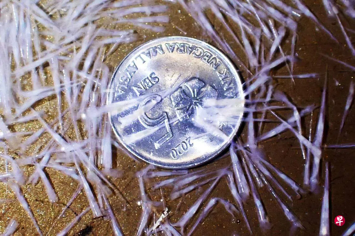 柔佛州渔业局副总监努胡达星期五(7月5日)在脸书发文告说,渔业局的研究人员6月11日在丰盛港水域发现这种海洋软体生物的踪迹。经专家鉴定后,确认是浮游生物翼足目(Petropoda),又称尖笔帽螺或蜻蜓角驼蝶螺(Creseis Acicula)。