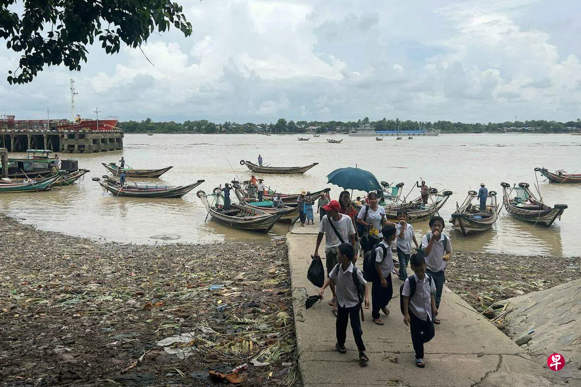 渡轮在缅甸是相当普遍的公共交通,但由于设施简陋,加上安全法规执行不力,不时发生超载翻覆的事故,酿成严重人命伤亡。图为星期三事故发生后,穿梭于仰光河的其他船只照旧载送学生上下课。(法新社)
