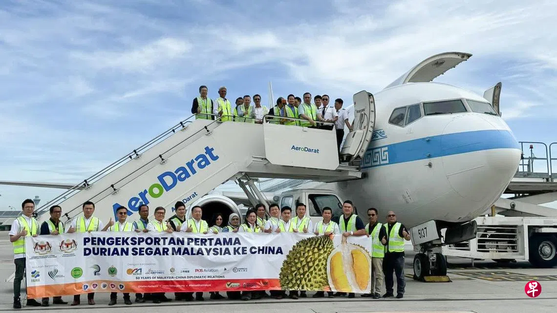 (雪邦综合讯)马来西亚首批新鲜榴梿星期六早上由货运包机出口到中国,预计24小时内即可分销到北京、上海、广州等主要城市。