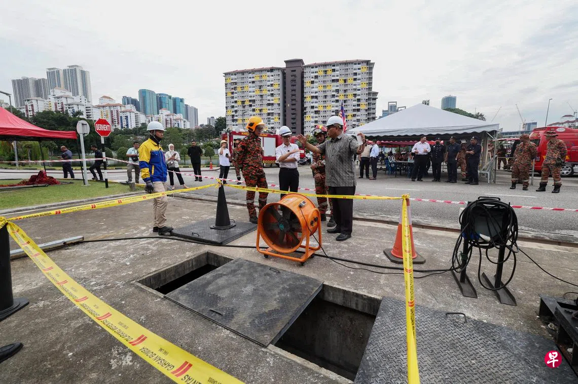 当局在印度回教堂路的搜救工作因为星期二晚的倾盆大雨而被迫暂停。警方再次警告民众勿到事发地点看热闹,因为那里不但有深坑,坑内还有有毒气体。
