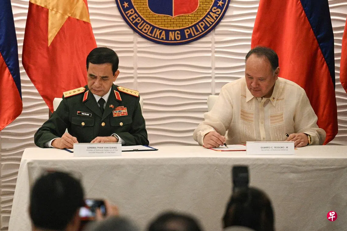 越南国防部长潘文江星期五(8月30日)在马尼拉与菲律宾防长特奥多罗举行会谈,之后签署旨在加强救灾及军事医学领域合作的意向书。特奥多罗随后表明,两国计划在今年底前签署一项国防合作协议。