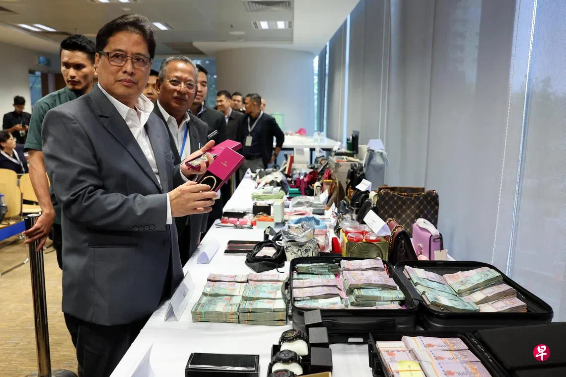 他也说,反贪会在系列取缔行动中查获大笔现金,包括149万4076令吉、9900美元(约1万2809新元)和5470泰铢(约213新元),合计约46万7362新元。当局也充公九辆汽车和13辆电单车。