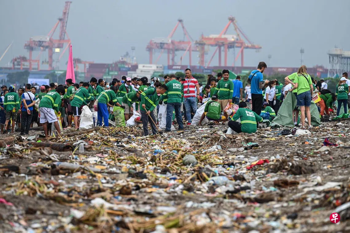 菲律宾首都马尼拉郊区的巴斯科海滩(Baseco Beach)常年垃圾成堆,许多无法降解的塑料垃圾都随着风浪漂流至此。数百名来自各学府、政府机构和私企的代表星期六(9月21日)配合国际净滩日,到巴斯科海滩捡垃圾。环保组织和政府机构已连续多年组织志愿者到这片海滩拾垃圾,但情况始终不见改善。(法新社)