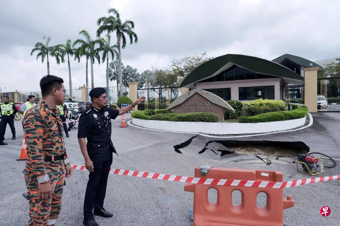 马国工程部发声明说,塌陷的路面位于机场贵宾专用的大红花大厦(Bunga Raya Complex)入口处,于星期三(9月25日)早上10时许被发现。地陷坑洞宽约5.4米,深约一米,洞里全是泥泞。
