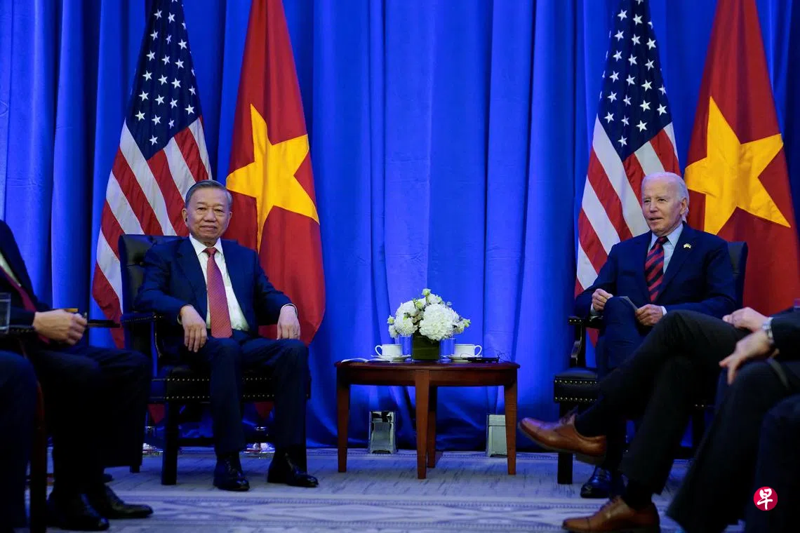 拜登和苏林在纽约的会晤结束后,越通社报道指拜登告诉苏林,美国希望在确保南中国海航行与飞行自由等方面与越南保持密切配合。由于越南和中国在南中国海存在主权争端,这样的表态似乎有警示中国,为越南撑腰的意味。