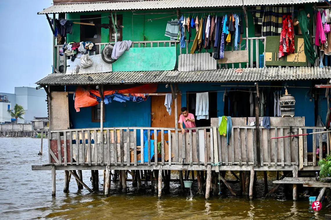 雅加达北部沿岸有不少水上高脚屋,由于雅加达不断下沉,全球变暖又导致海平面上升,这些居民日后将受到海水倒灌的直接威胁。