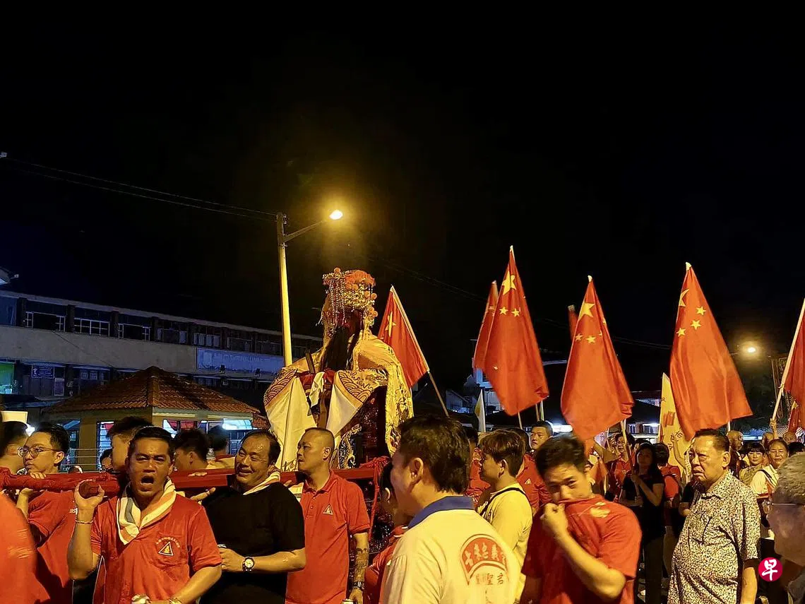 这起事件星期四(10月24日)晚发生在霹雳州著名的安顺斜塔广场。当时马国关公文化推广中心在那里举行第10届马国国际关公文化节游行,游行队伍中有人挥舞中国国旗,还有人高喊“五星红旗,加油!”