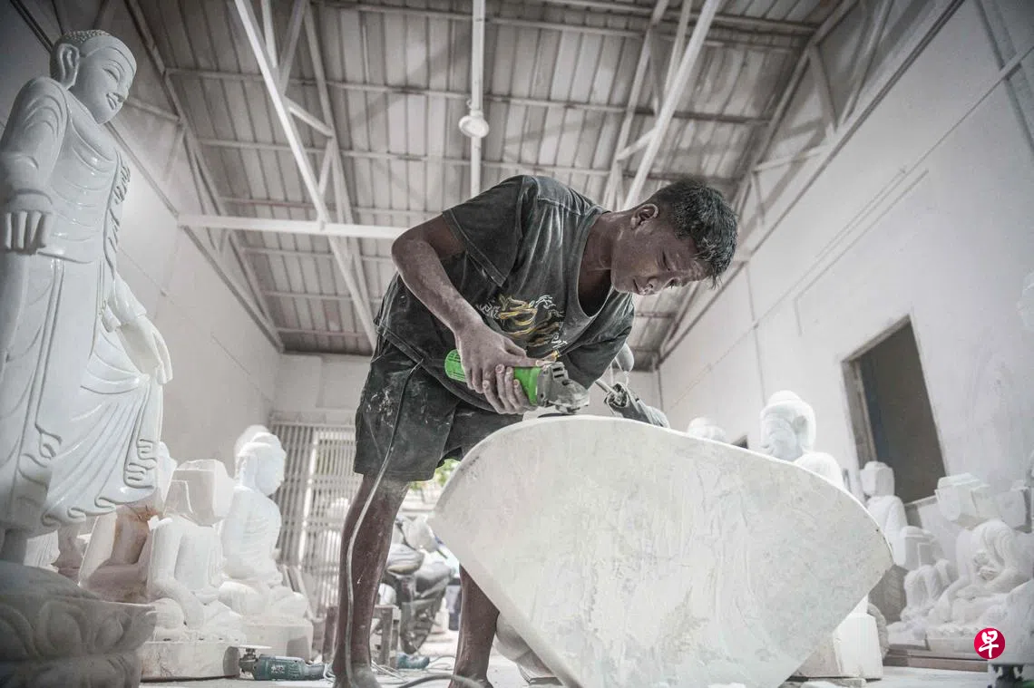 曼德勒以北的局势越来越严峻,敏敏索和其他石雕师傅只能专注于手头上仅有的数十尊未完工佛像。敏敏索说,一尊高约25厘米的成品雕像可卖到10万至20万缅元(按官方汇率计算约为66至132新元)。