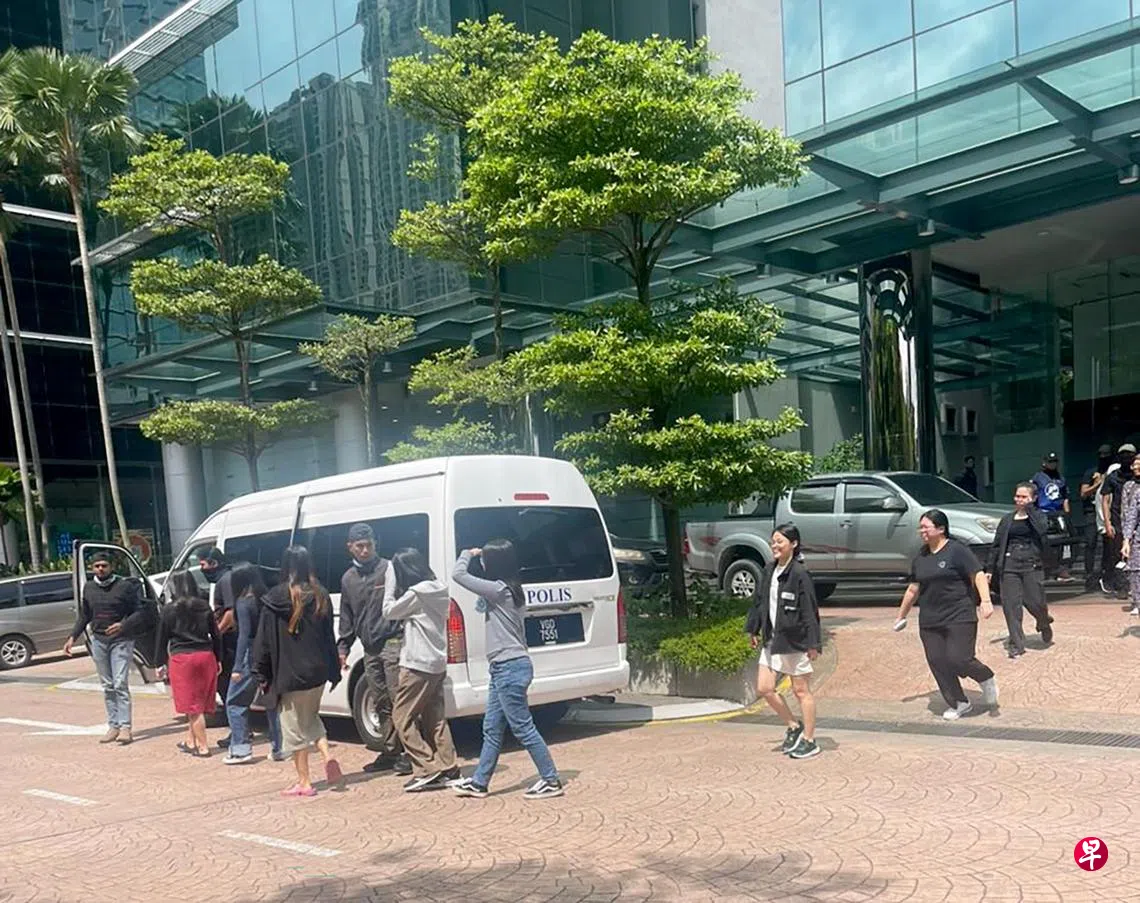 《中国报》引述警方消息人士说,由于涉及人数众多,警方派出40名全副武装的特警到场,协助移民局执法人员将数十名男女嫌犯押送下楼,并出动至少12辆客货车将所有嫌犯押回警局,以进一步调查。