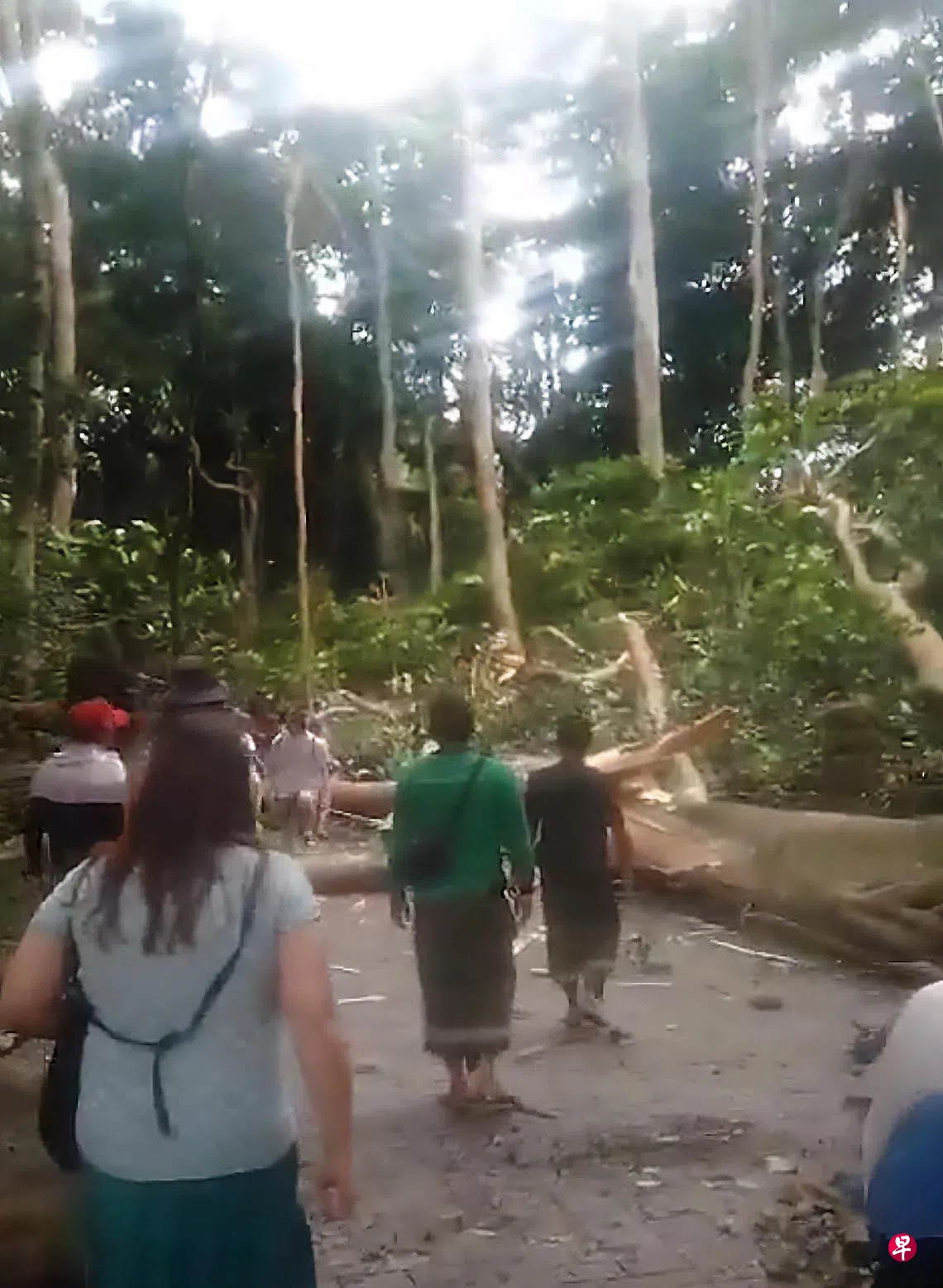 这起事故发生在星期二(12月10日)中午时分。根据社交媒体流传的视频,事发时刮着大风,林中的大树轰然倒下,吓得游客四处逃窜。