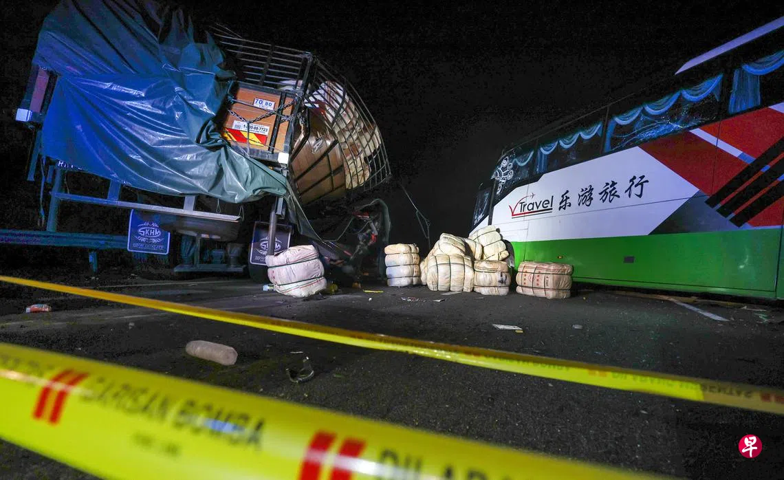 警方发言人说,旅游巴士上有两人死亡,一人是新加坡籍的66岁华族女子,一人是马国籍司机。