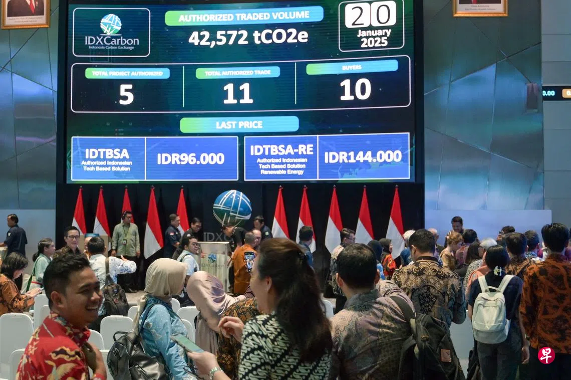 由印尼交易所运营的碳交易平台IDXCarbon于2023年9月启用,但市场需求疲弱。彭博社报道,2024年转手的碳信用达41万3764公吨,平均每公吨4万7682印尼盾(约3.97新元)。