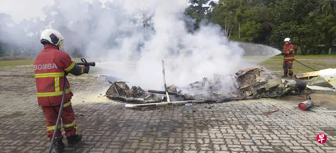 (文冬综合讯)马来西亚一架运输直升机降落时失控翻覆,机身完全烧毁,机上一名工程师不幸丧命,机师则成功获救。