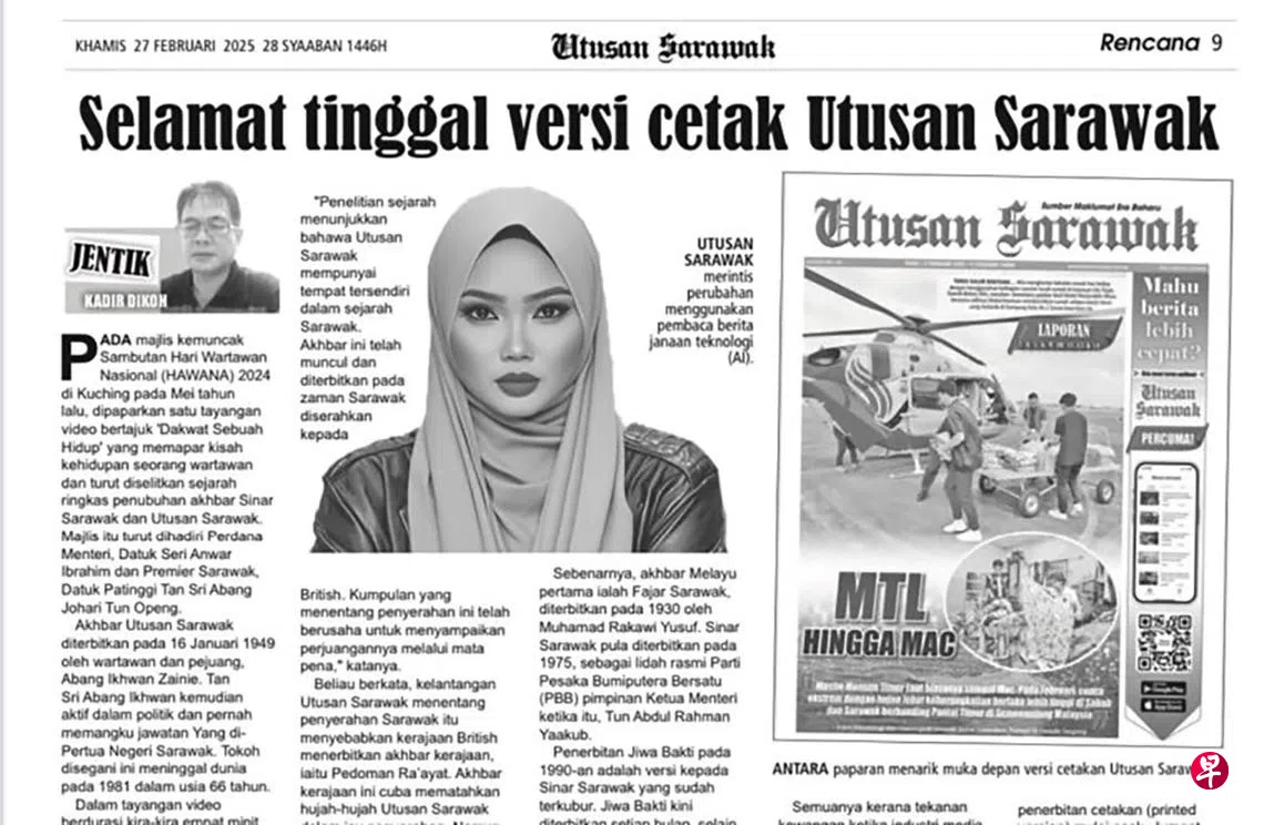 (古晋综合讯)砂拉越历史悠久的马来文报章《砂拉越前锋报》星期五(2月28日)起停止出版纸版报刊,并在星期六(3月1日)全面转型为网络媒体。