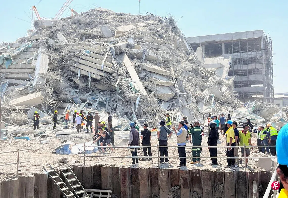 在此次地震波及的周边国家中,泰国的受灾情况最严重,首都曼谷一座30层在建高楼倒塌,救援人员仍在搜寻被困于废墟中的人们。