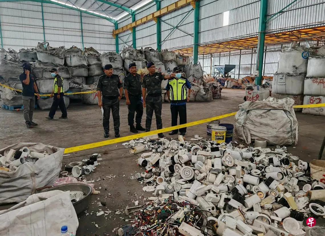 (怡保综合讯)马来西亚警方与霹雳州环境局联手突击霹雳拿乞一家非法电子垃圾及塑料废料回收厂,起获价值约1亿1100万令吉(约3355万新元)的电子垃圾及塑料废料,并逮捕五名缅甸籍非法客工。