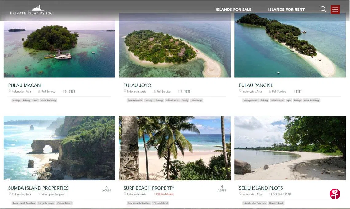过去一周有报道称,印尼一些小岛在privateislandsonline.com网站上挂牌出售,这是一个由加拿大公司Private Islands Inc.运营的岛屿销售网站。网站显示,苏门答腊邦加-勿里洞省的塞留岛(Pulau Seliu)开价16万7000美元(约21万3000新元)。
