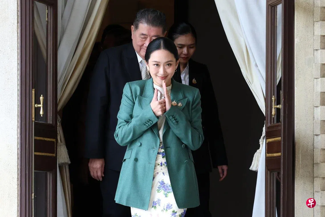 泰国宪法法院星期二(1日)受理36名参议员提交的弹劾请愿书,并投票决定暂停佩通坦的首相职务。请愿书指控佩通坦在与柬埔寨参议院主席洪森的通话中不诚实,违反宪法规定的道德标准。