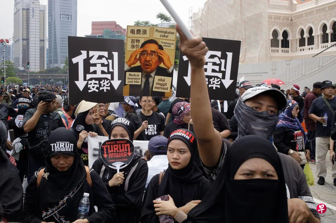 (吉隆坡综合讯)马来西亚逾万人响应在野阵营国民联盟的号召,走上街头参加“倒安华集会”。集会者不满首相安华没有兑现改革承诺,且国家经济不见改善、百物涨价,认为安华治理不力,应下台以示负责。