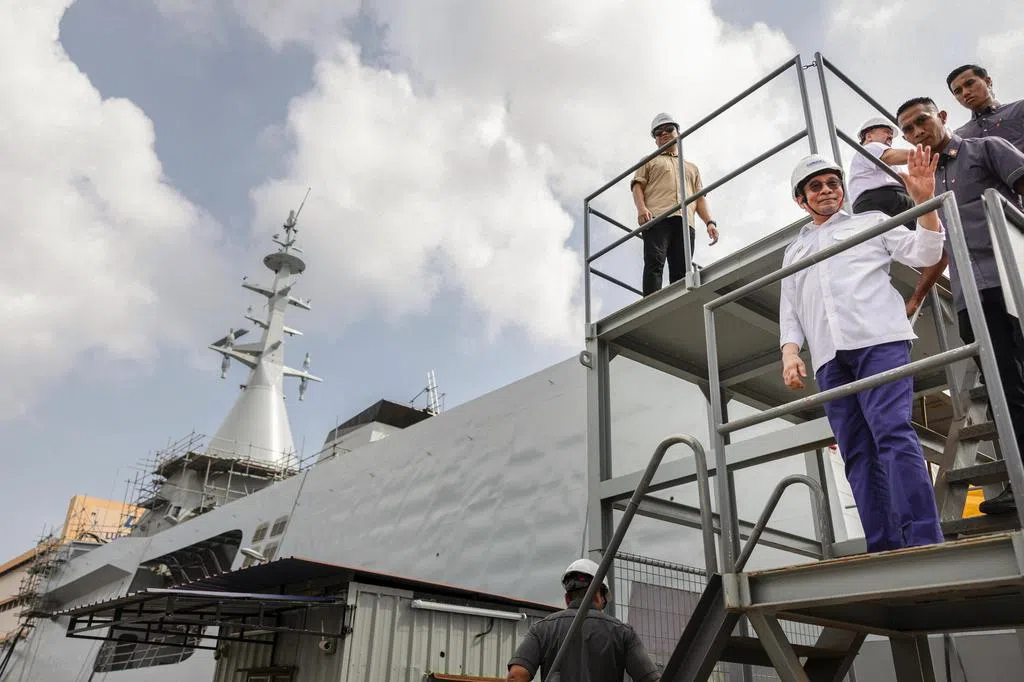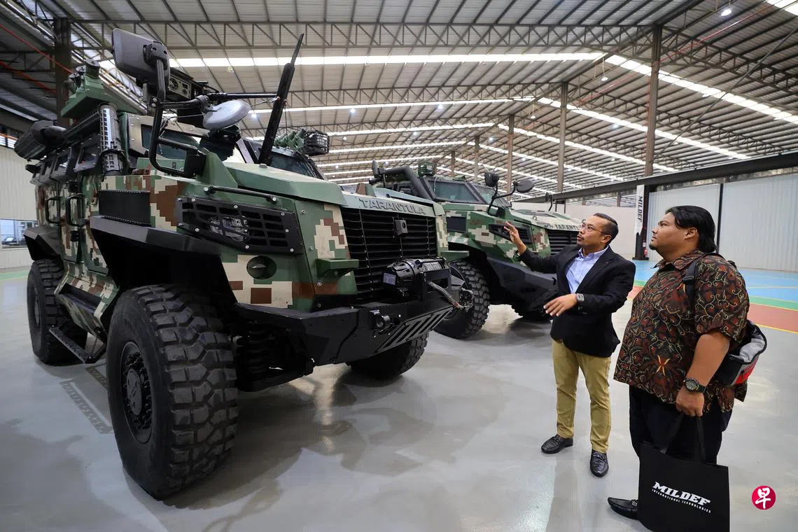 马国国防部属下军备制造商Mildef国际科技有限公司董事经理莫哈末尼占(左)星期四(8月21日)向记者说明,整个交付过程共五年,而分阶段交付旨在确保“狼蛛”的设计、功能与防弹性能符合陆军作战需求。