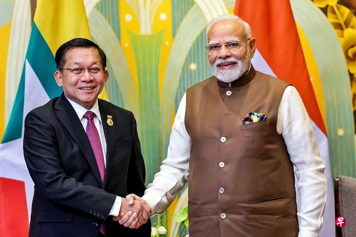 这是敏昂莱少见的与其他国家领导人会晤。自2021年军方发动政变,推翻翁山淑枝领导的文职政府,导致缅甸内战爆发以来,敏昂莱一直被国际社会所疏远。