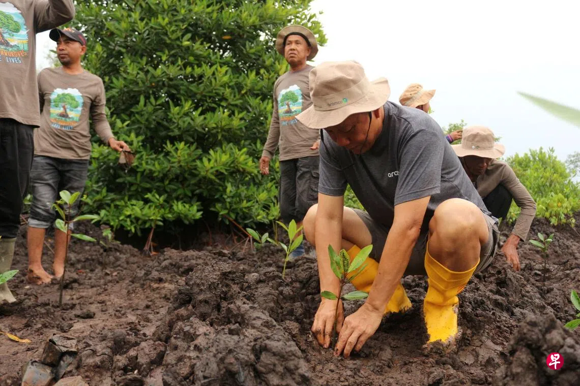 沙特阿美新加坡子公司2023年起资助印尼的红树林修复工作。公司总监奥多莎莉(Fai K. Aldossary)说,红树林为维持生态平衡和保护海岸线发挥关键作用。在廖内省的保育项目反映了公司为促进环境尽责管理和可持续发展的不间断努力。