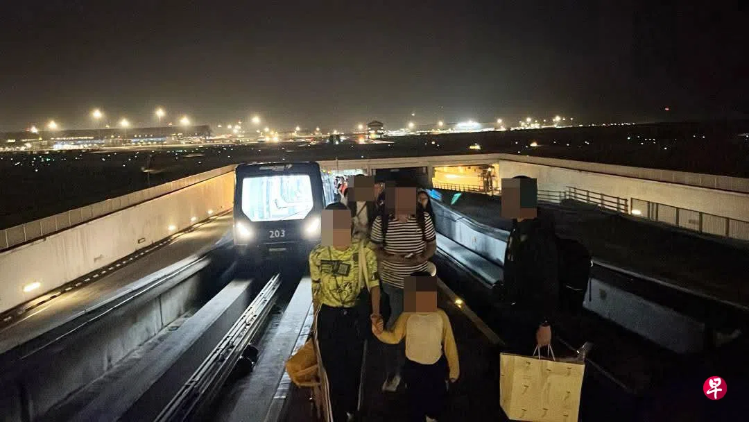 据《中国报》报道,电车突然停运后,许多旅客被迫带着家人拉着行李,摸黑沿着轨道步行到主航站楼。