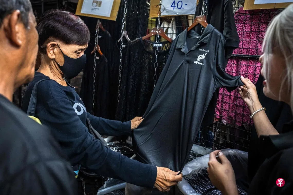 摊主塔那猜说,他在王太后逝世的消息宣布后不久,推出了黑衣仅卖40泰铢的特别促销。他坦言,每卖一件至少亏损100泰铢。