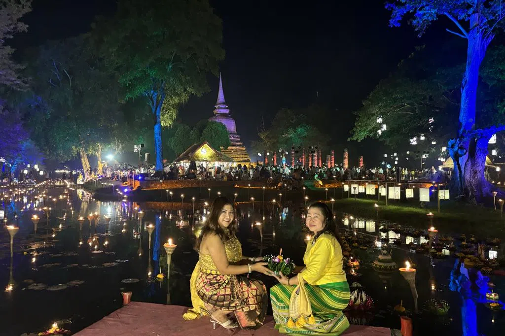 不过,泰国目前处于王太后诗丽吉的国丧期,今年的节庆氛围较往年更肃穆庄重,水灯的数量也明显减少。