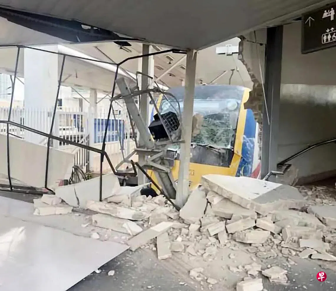 (北海综合讯)马来亚铁道公司一列电动火车在槟城州北海站滑行过头,撞破月台墙体,所幸当时未开始载客,没有造成人员伤亡。