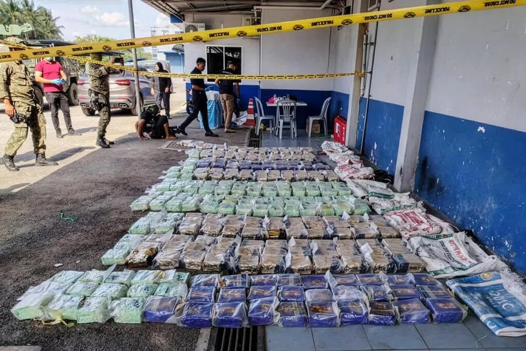 马国军方日前在吉打州马泰边境侦破今年以来查获的最大规模毒品走私案。警方接手调查后发现,九名泰国籍嫌犯为了赚取每人2万泰铢(约817新元)的酬劳,不惜铤而走险,各背着一个装有约37公斤冰毒的麻袋徒步穿越森林,企图将市值近1100万令吉(约346万新元)的毒品走私入境马国。
