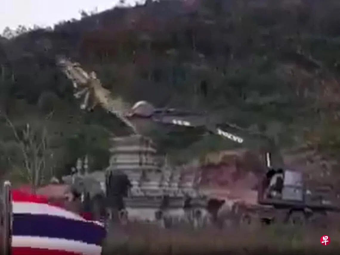 一段相关视频星期一在泰国社交媒体和当地媒体上流传,视频显示泰国使用挖掘机拆除毗湿奴雕像。泰军尚未对此作出回应。