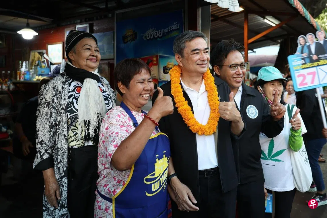 阿比昔星期天(1月4日)带领数名民主党候选人到曼谷第三选区走访选民。他敦促选民重新审视民主党过往的政绩和改革措施,并打出温情牌,指他与当地颇有渊源,首次当选国会议员就是在这个选区胜出。