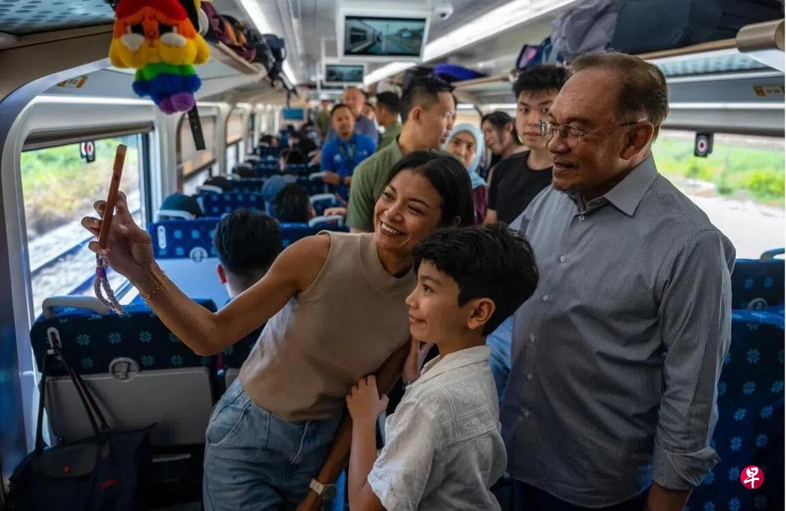 马来西亚首相安华星期天(2月1日)趁着联邦直辖区日及大宝森节连假,搭乘马来亚铁道公司的电动列车服务(Electric Train Service,简称ETS)从吉隆坡前往新山。